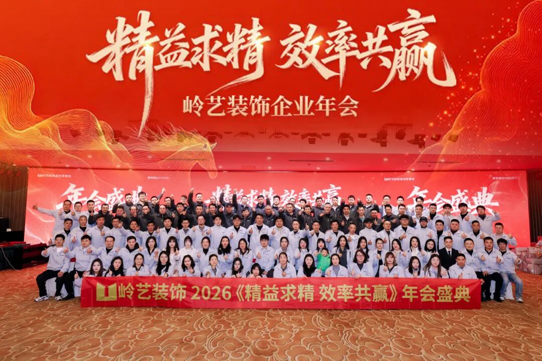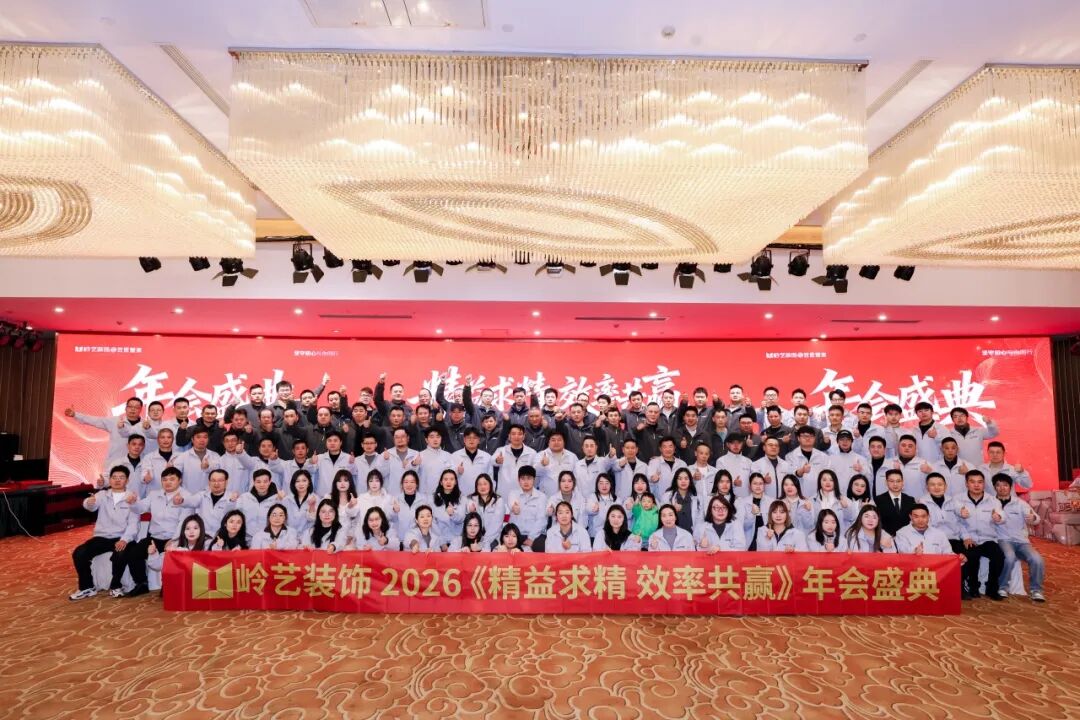2026年2月2日,岭艺装饰年会盛典隆重举行。以 “精益求精,效率共赢” 为主题,这不仅是对过去一年公司发展理念的高度凝练,更是对未来发展方向的精准指引。“精益求精” 每一个细节都关乎着客户的居住体验和满意度;“效率共赢” 则强调了团队协作和高效执行的重要性。
