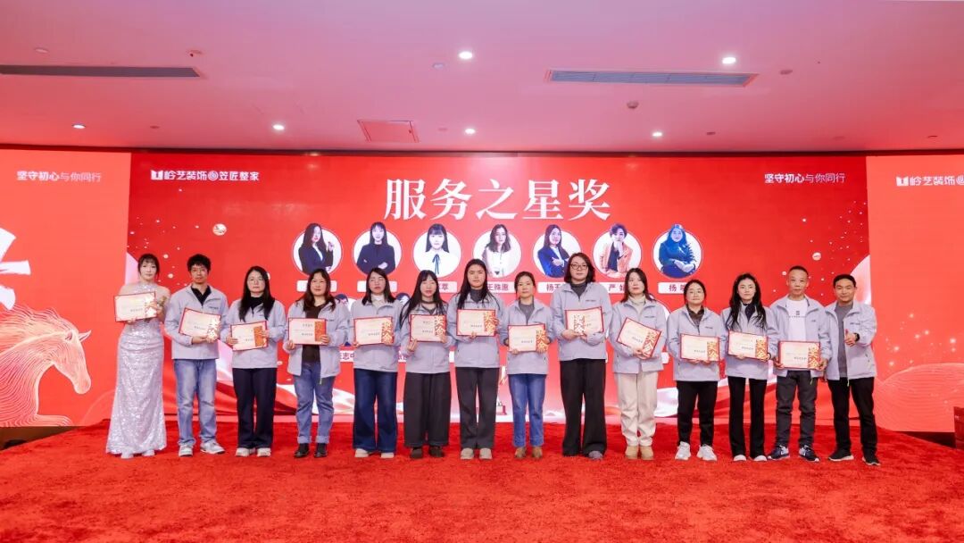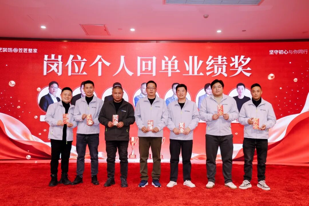 步入会场,热烈的氛围瞬间将每一个人环绕!签名墙前身影流动,欢声与祝福此起彼伏。镜头下,每一张合影都将此刻的欢愉与热情瞬间定格,盛典未启,气氛已至沸点! 携手共进 共启新章 ▲张总开场致辞 盛典伊始,创始人张总上台致开场辞,为全体员工复盘了2025年的发展成果,肯定了全体员工的辛勤付出,同时也坦诚指出当前面临的挑战,进一步明确2026年的前行方向。只有全体员工协同发力,以精益求精的态度提效率,以效率提升降成本,才能实现全员、全链路的共赢,助力公司成为亿万家庭家居首选服务商。 ▲施工部分享 工欲善其事,必先利其器。想要实现精益求精的品质追求,扎实的施工工艺是根基。新工艺为我们的品质升级注入了新动能,而安全则是所有成果的前提与底线。 ▲朱泾店、石化店分享 一群优秀的设计师,他们以真诚服务每一位客户,从前期沟通到后期落地,全程贴心跟进、精益求精。也正因这份极致的设计与服务,众多业主毫不犹豫地选择与他们携手同行,他们也成为了我们当之无愧的业绩先锋! ▲市场部分享 每一次推广,都是对目标的精准击破;每一次布局,都是对未来的智慧规划。只有深入了解需求,才能不断引领趋势,而市场的每一次突破,都是我们不断前行的动力。 ▲各分店分享 在过去的一年里,我们始终坚持‘精益求精’的理念,不断探索和创新施工工艺。通过引入先进的施工技术和设备,我们有效提高了施工效率和质量,减少了施工过程中的误差和浪费。同时,我们还注重客户服务的优化,建立了完善的客户反馈机制,及时了解客户的需求和意见,并加以改进。 在热烈的掌声中,年会进入了激动人心的表彰环节。本次年会设立了多个奖项,旨在表彰过去一年里在各个岗位上表现出色、为公司发展做出突出贡献的员工和团队。这些奖项不仅是对他们工作的高度认可,更是对全体员工的激励和鞭策,鼓励大家在新的一年里继续努力,追求卓越。 ▲项目管家回单业绩奖 毕胜雷 汪胜 陶永宏 吴玉法 王景标 ▲岗位个人回单业绩奖 李启辉、朱朋、李聪、陶永宏、周梦祥、张明、徐見 ▲单店半年度回单配比完成奖 上半年完成奖:南桥团队、石化团队 下半年完成奖:松江团队、朱泾团队、石化团队、南桥团队 ▲全年度奋斗目标完成奖、人均业绩超额奖、施工部回单超指标完成团队奖 朱泾团队 ▲市场开拓奖 陈杰 ▲业绩先锋奖 王晨鞬、吴娟、王玲、王典、范鹏辉 ▲全员回单奖(设计部) 李聪、王玲、王晨韃、吴娟、牛犇、石娟、谷蕊、李沙沙、林刚、范鹏辉、叶敏、王典、程俭民、靳宗元、高玲玲、潘向虎、卞婧 ▲全员回单奖(施工部) 陶永宏、姜守奎、吴玉法、王景标、黄伟伟、李卫国、周梦祥、徐达军、张俊、夏晓青、包志奇、汪胜、邵立武、唐文秀、淘勇春、毕胜雷、陈建春、徐结强、任守财、仲坚 ▲全员回单奖(行政部) 张佳琪、王芳、石磊、MAX、杨清平、朱朋、张明、李启辉、操龙川、徐見、熊建文、范宋娟、严婧 ▲金尺奖 李沙沙、赵勇博、范鹏辉、王典、王晨鞬、叶敏、卞婧 ▲金锤奖 张俊、包志奇、汪胜、李五九、陶永宏、毕胜雷、徐结强 ▲服务之星奖 李洁华、范宋娟、涂萃萃、王殊惠、杨玉林、严婧、杨喻、张志中、张佳琪、王芳、严玉梅,谢盈盈、程明贵 ▲索菲亚-明星设计师 严玉梅,谢盈盈 ▲岭艺装饰创始人钱总致祝酒辞 盛典现场,岭艺装饰创始人钱总上台致祝酒辞,大家举杯欢庆,敬过往,向未来,干杯!开启晚宴精彩篇章! 总部节目《敬业阵线联盟》 松江分部节目《真心英雄》 柳琴演奏《多年以前》 互动游戏《徒手穿裤衩》 朱泾分部节目《突然的自我》 钢琴独奏《克罗地亚狂想曲》《彩云追月》 石化分部节目《和你一样》 互动游戏《赶马入栏》 浦东分部节目《我的好兄弟》 长号演奏《长江之歌》 奉贤分部节目《西海情歌》 除了精彩的表演,年会还设置了激动人心的抽奖环节,为大家带来了更多的惊喜和欢乐。抽奖环节是年会中最令人期待的部分之一,大家都怀揣着满满的期待,希望自己能成为那个幸运儿。 幸运抽奖 惊喜连连▲ 盛会落幕,初心不改 征程新启,逐光而行 2026 同心致远,筑梦同行 精益求精,共赢未来