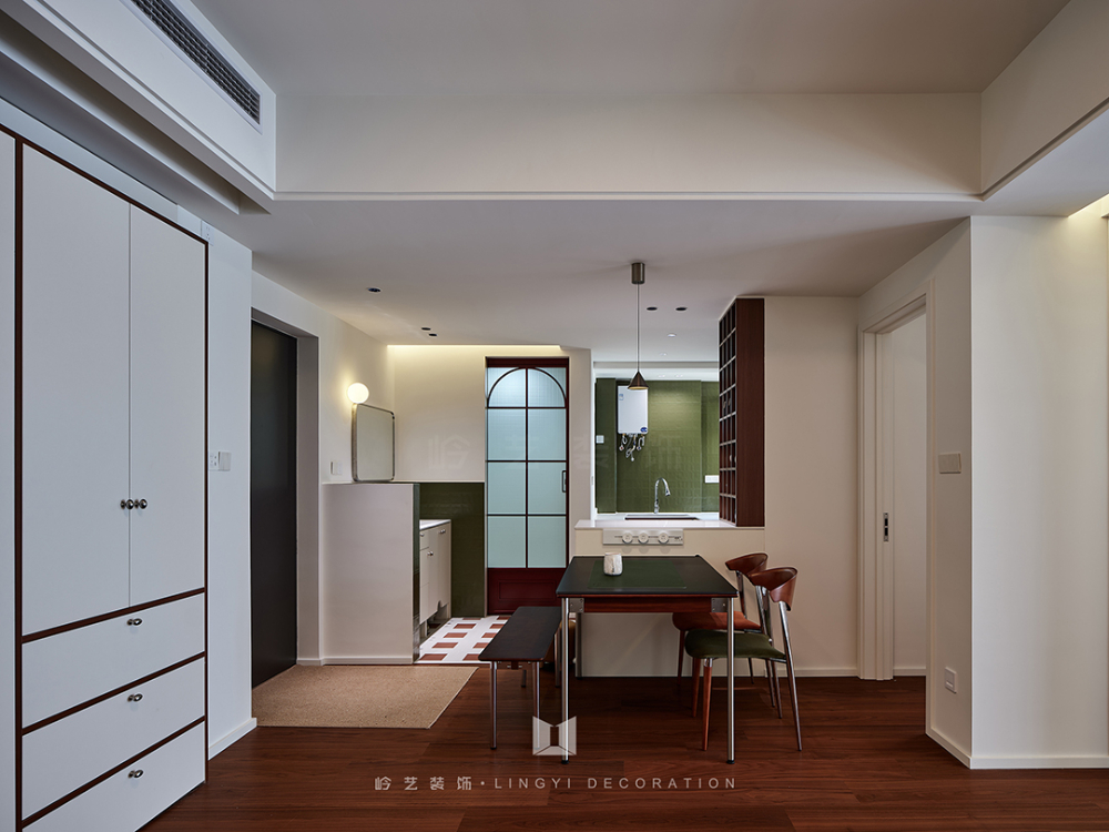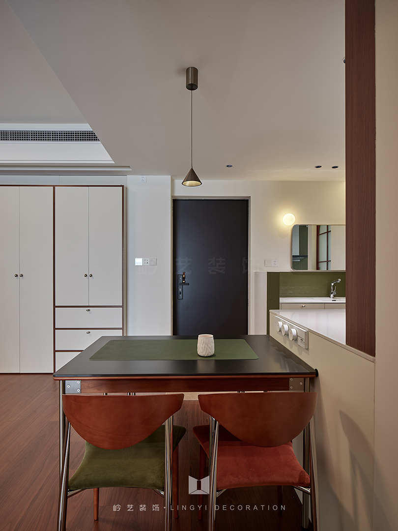 本案位于上海 · 松江 · 佘山假日半岛,建筑面积70㎡,业主是一对年轻夫妻,既喜欢中古风的温润质感与复古韵味,又深知小户型需以实用为先,因此明确提出“风格不打折、功能不缩水”的核心期望——既要避开中古风易显厚重压抑的雷区,让空间保持通透轻盈,又要解决两人居住的储物刚需、烹饪便捷性及偶尔待客的社交需求,最终实现“颜值与实用双在线”的理想家居。