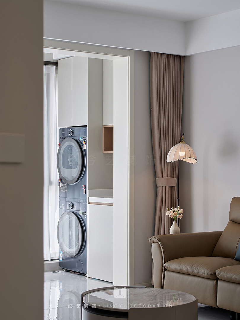 本案位于上海 · 金山 · 翰中华庭,建筑面积87㎡,业主装修时纠结 87㎡两房空间小、户型有硬伤,但和设计师沟通后,设计师以 “空间扩容 + 实用美学” 为核心,通过功能区重组实现空间利用率最大化,兼顾实用与居住舒适度,让小空间在简约设计中实现功能与美感的双重提升。