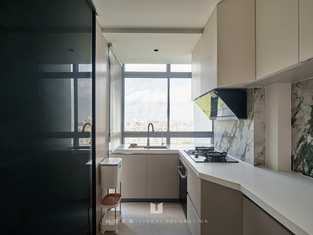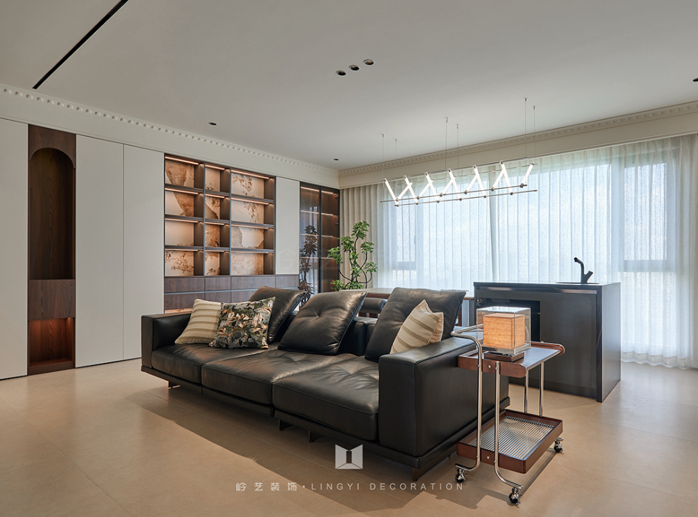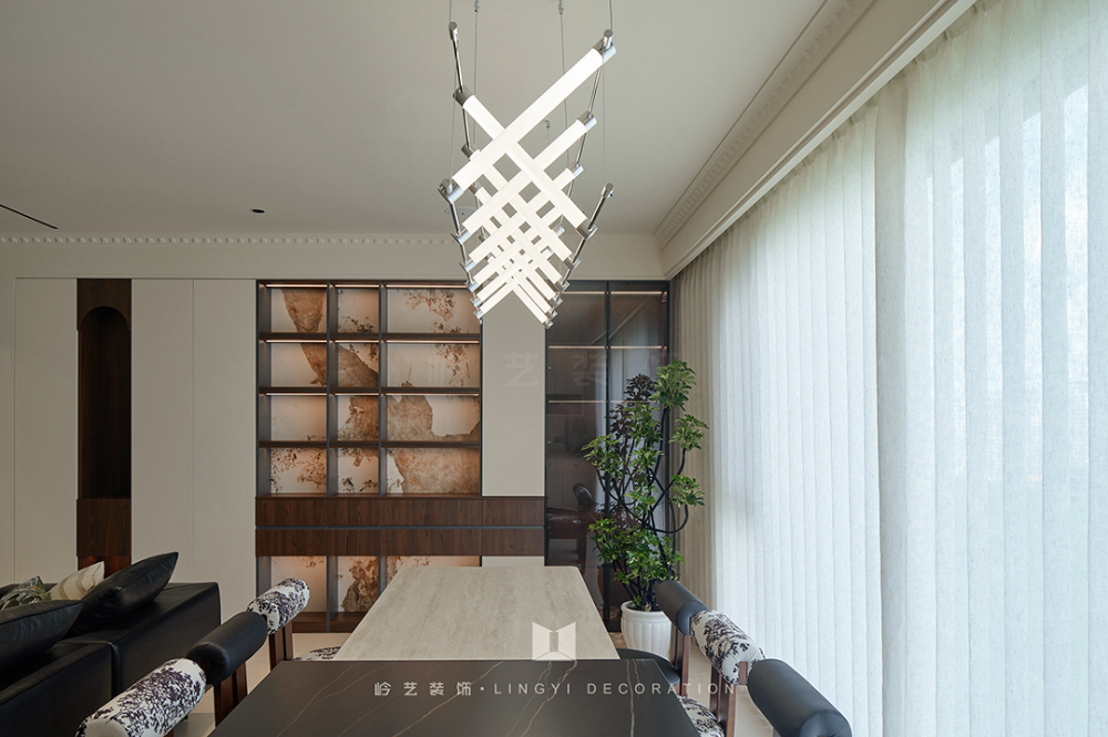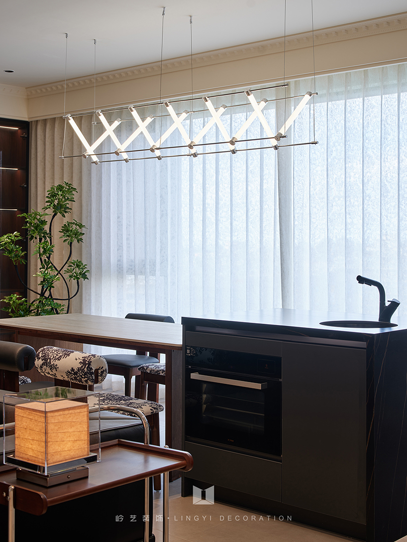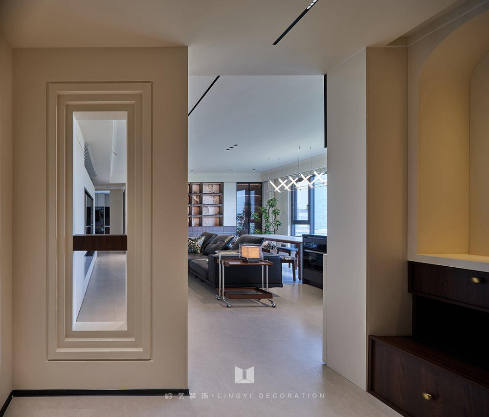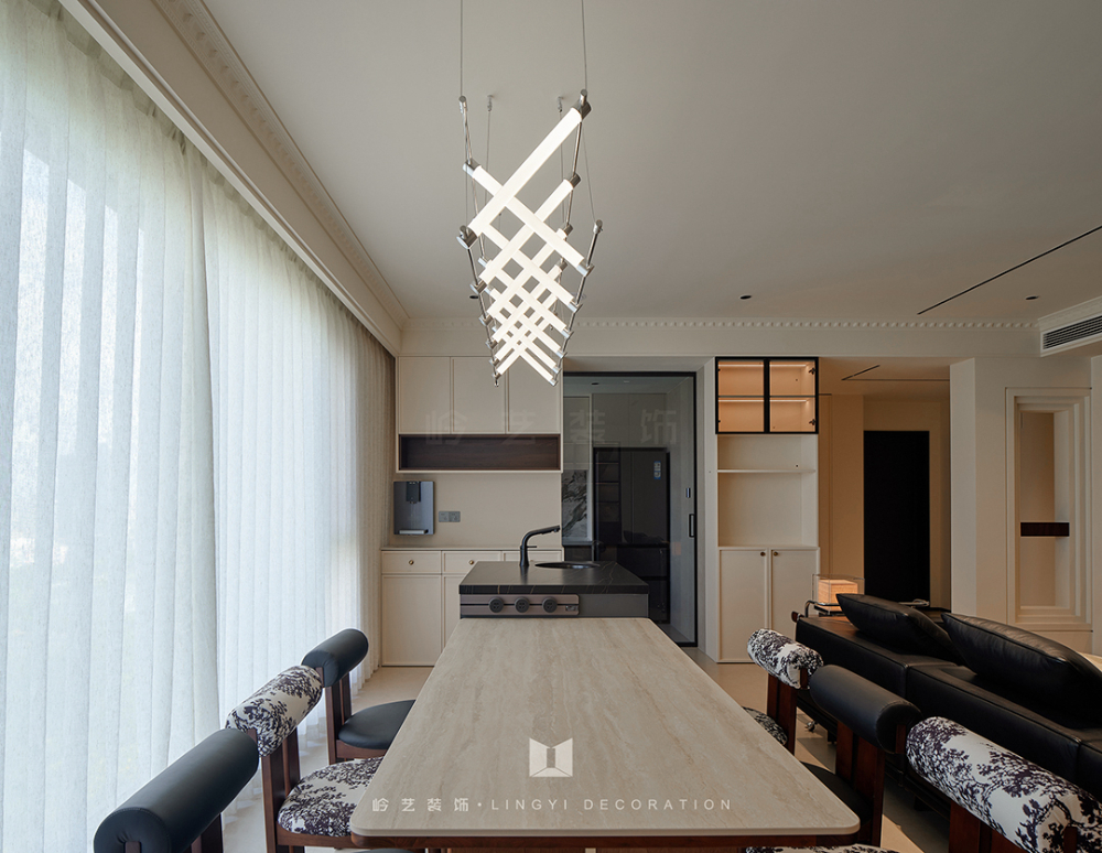 本案位于上海 · 松江 · 湖畔天地,建筑面积146㎡,前期沟通时,岭艺团队多次实地勘测,发现原户型客餐厅布局常规,空间尺度未完全释放,且部分区域收纳与实用功能存在失衡。针对业主一家的居住需求 —— 既要满足双孩家庭的独立成长空间,又需适配中西式用餐习惯,还得兼顾家政与储物的便捷性,我们敲定了 “空间重组 + 功能叠加 + 美学融合” 的核心设计思路。
