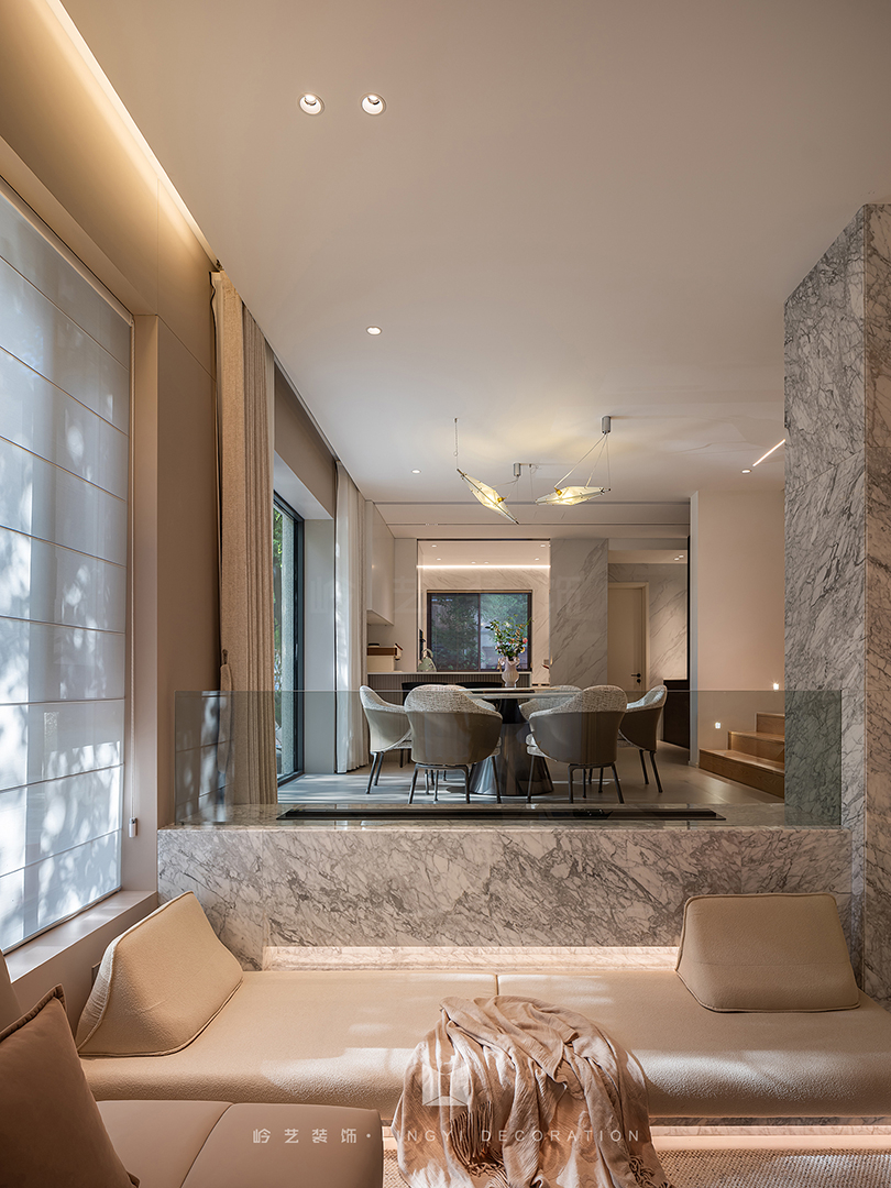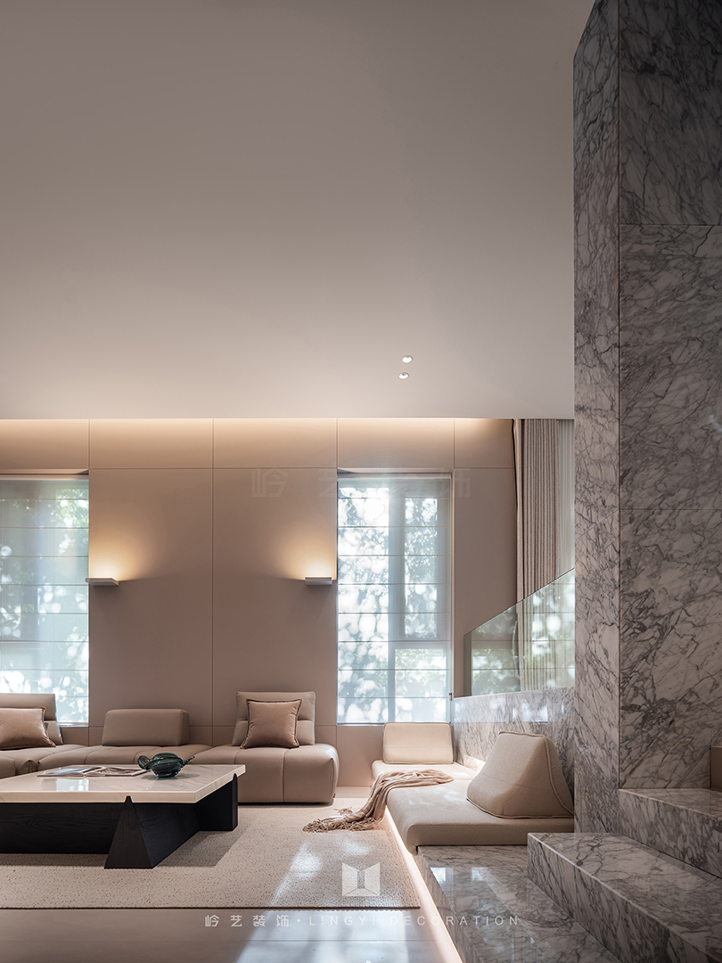 本案位于上海 · 金山 · 万安金邸,作为独栋别墅,其空间结构复杂,面积达 360 平方米,地上三层,地下还设有一个地下室。别墅原有的功能布局与审美呈现上,与业主追求的现代、舒适、个性的居住理念存在偏差。这促使我们从空间优化、风格重塑、功能完善等多维度展开全面改造,以满足业主对高品质生活空间的期待。