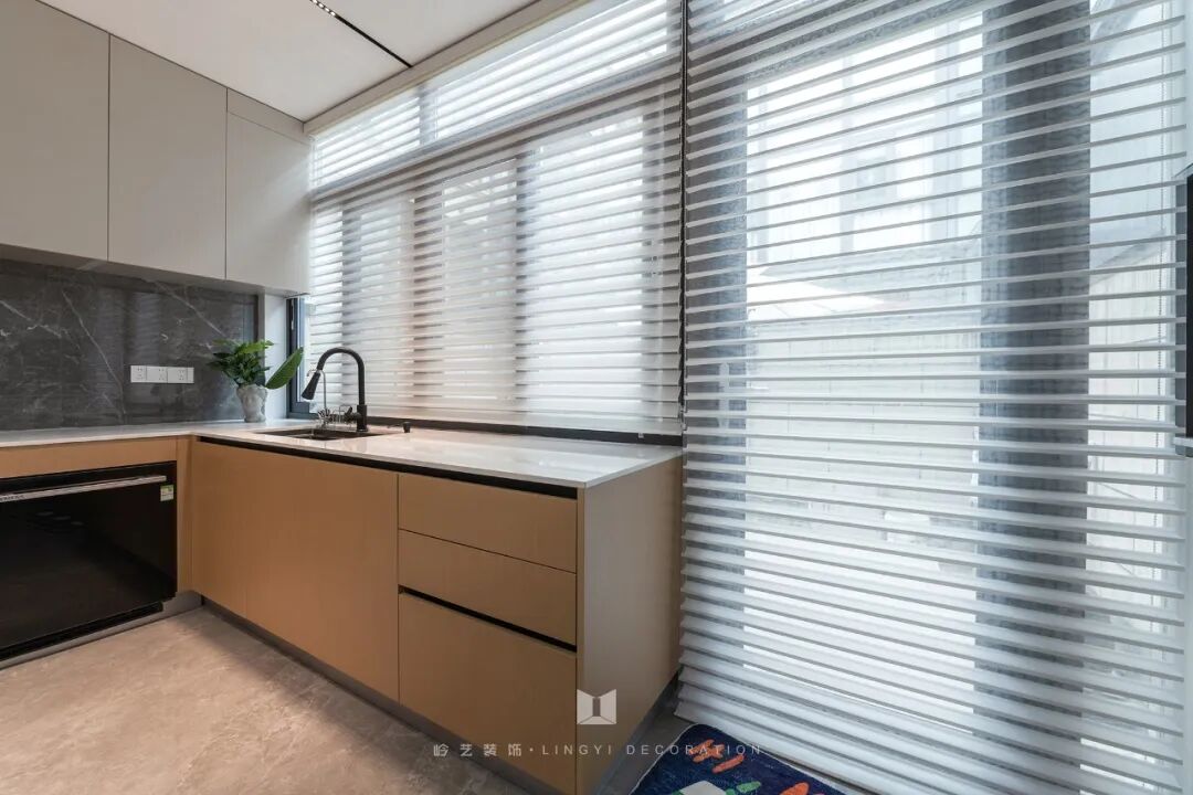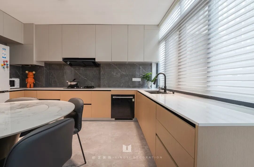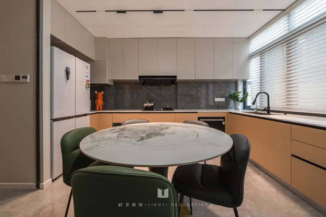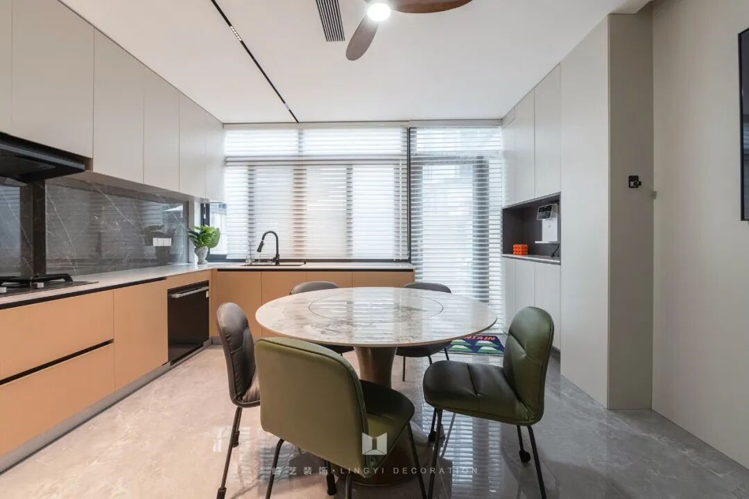 于是,设计师大胆地将厨房和餐厅合并,打造出一个开放式的餐厨一体化空间,让业主的烹饪和用餐体验得到了极大提升。