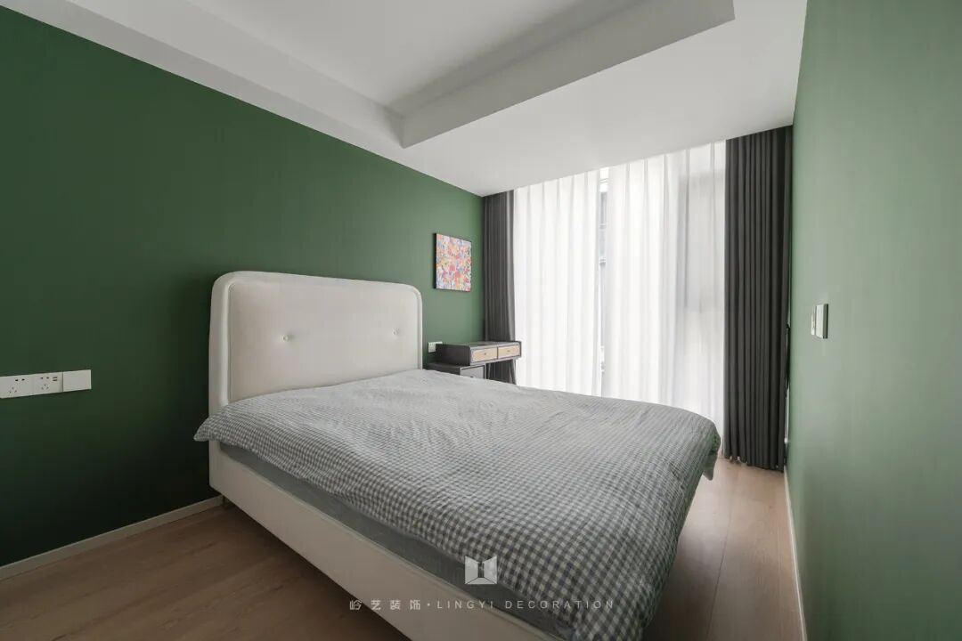 墨绿色在色彩心理学中,代表着神秘、高贵与深沉,它为卧室营造出一种独特的氛围感,仿佛将大自然的深邃宁静引入了室内。这种色彩不仅彰显着业主独特的品味,更给人带来一种强烈的视觉冲击,让人过目难忘。
