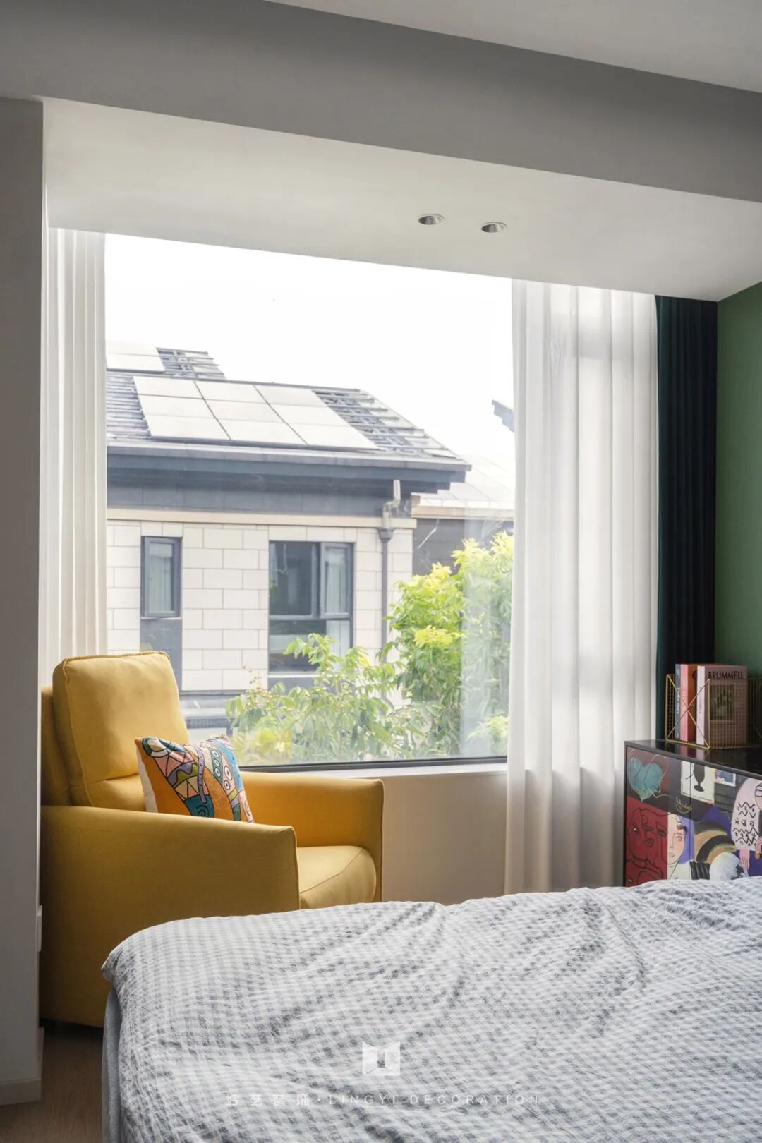 休闲躺椅更是点睛之笔,曲线贴合人体工学设计,闲暇时,业主可以躺在上面,沐浴着透过窗户洒下的阳光,惬意地读一本书,或是放空思绪,享受这片刻的宁静与美好。