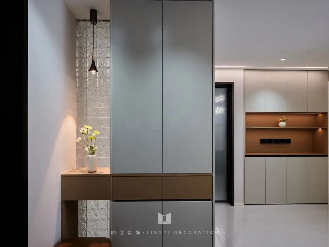 从实景图中可以看到,端景部分摆放着精致的装饰品,一进门就能吸引眼球,提升了空间的艺术氛围,给人一种眼前一亮的感觉。抽屉的设计也非常实用,可以收纳一些常用的小物件,比如钥匙、钱包等,让进门后的物品放置更加有序,避免了随手乱放的混乱情况,极大地提升了空间的实用性。