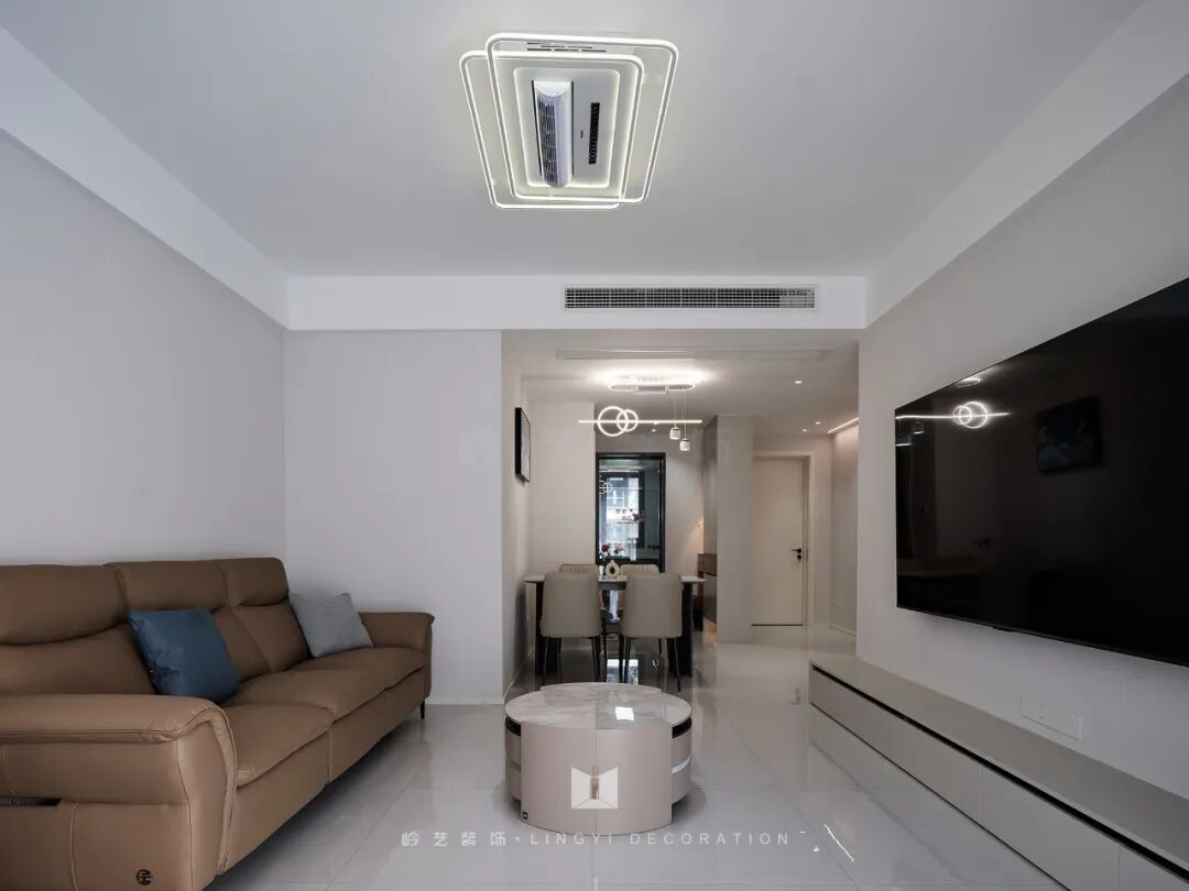 卧室作为休息的空间,舒适度至关重要。如果空调出风口直接对着床,在使用空调时,冷风或热风直吹人体,会让人感觉非常不适,容易引起头痛、感冒等身体问题,也会严重影响睡眠质量。将内机安装在过道,避免了冷风直接吹在床上,同时,过道区域人不会长期停留,也不会对层高产生过多的关注。