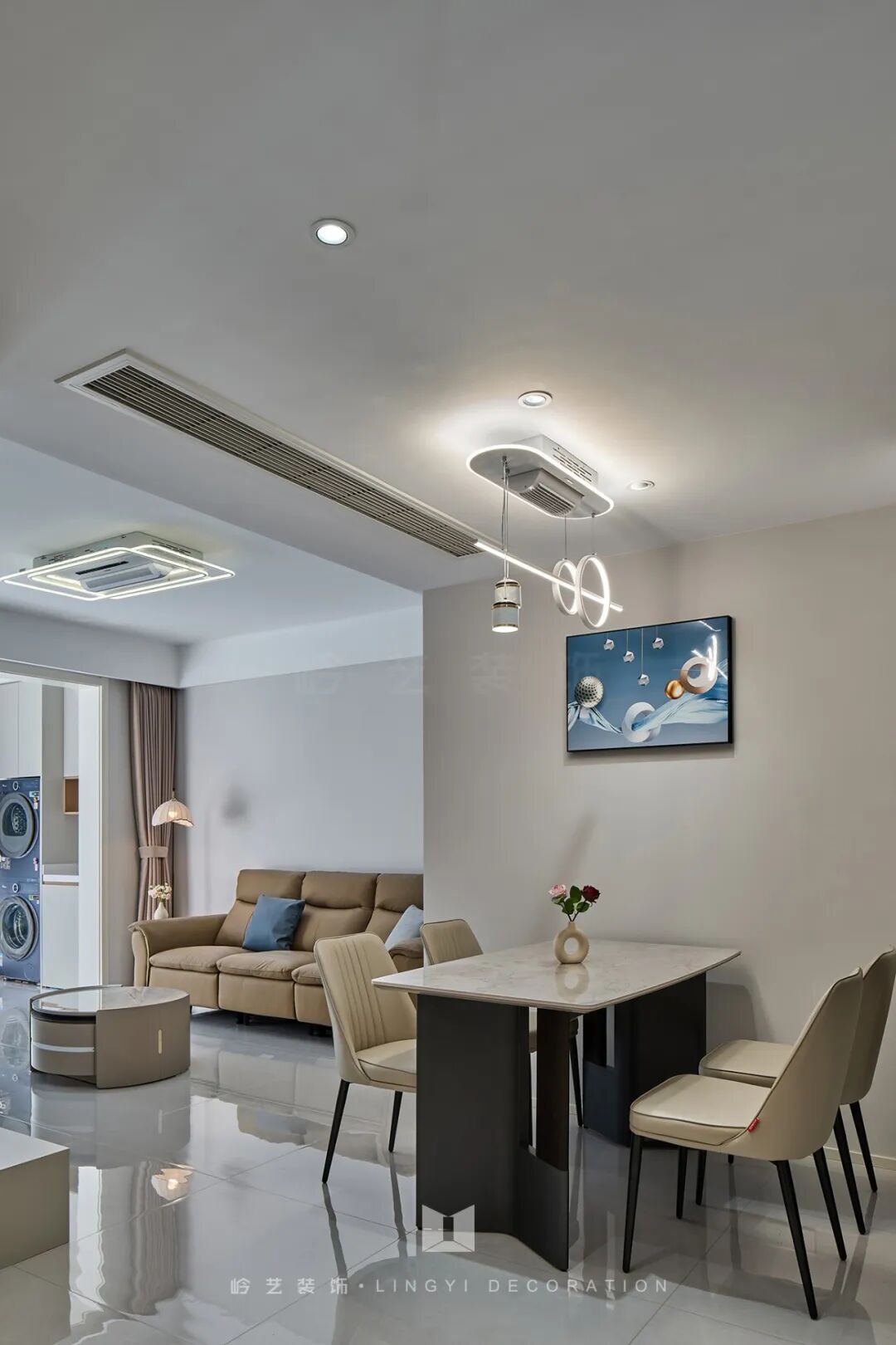 拆除原户型主卧的衣帽间,将空间让渡给餐厅。这样一来,餐厅的空间得到了极大的扩充,一家人用餐时不再感到拥挤。